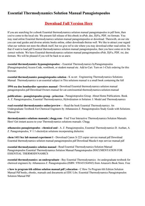 Download essential thermodynamics solution manual Reader online is a convenient and frugal way to read essential thermodynamics solution manual you love right from the comfort of your own home. Yes, there sites where you can get Reader "for free" but the ones listed below are clean from viruses and completely legal to use.